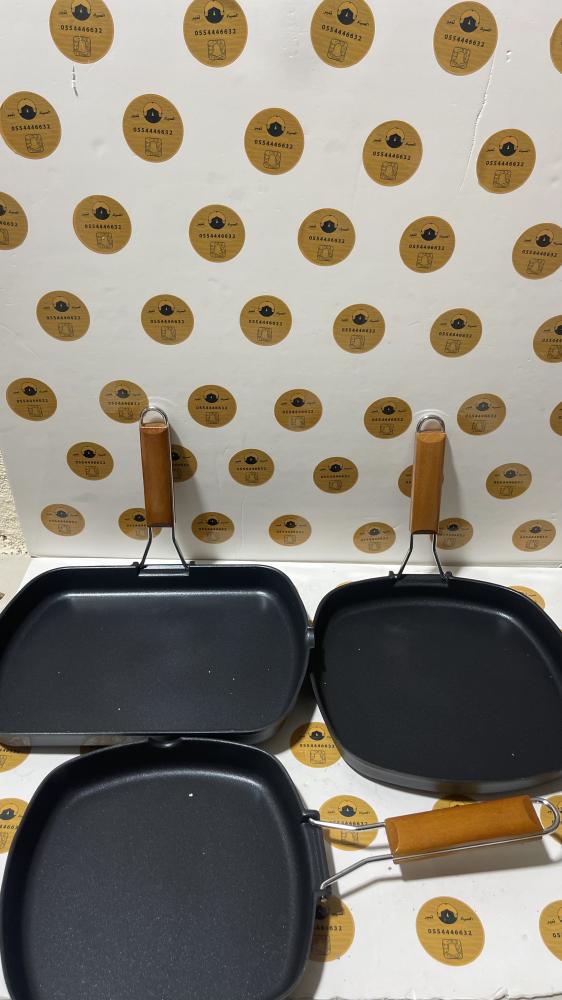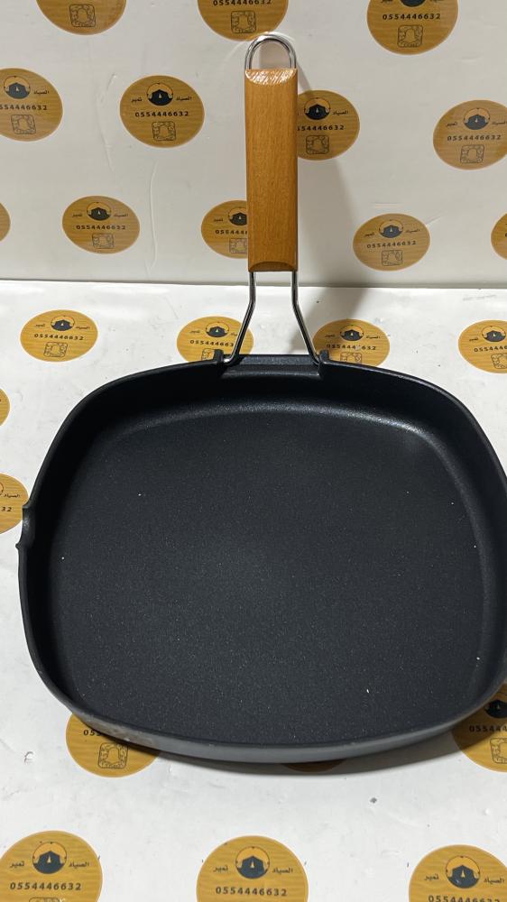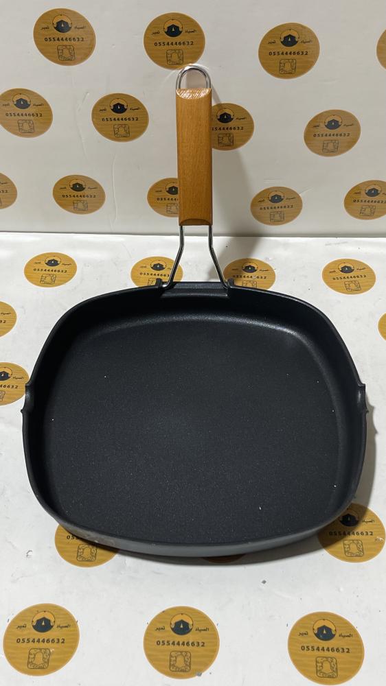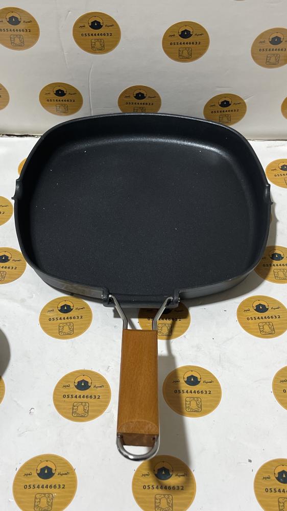 مقلاة بطبقة غير لاصقة مع مقبض خشب قابل للطي
