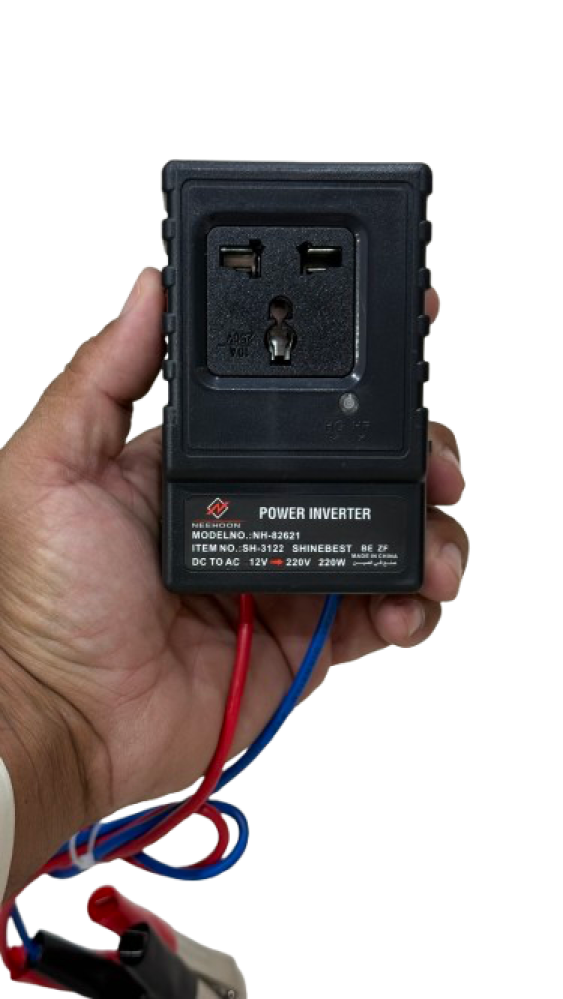 محول كهرباء من بطارية السيارة إلى فيش ٢٢٠ فولت مع منفذين يوسبي ويتحمل إلى ٢٢٠ واط