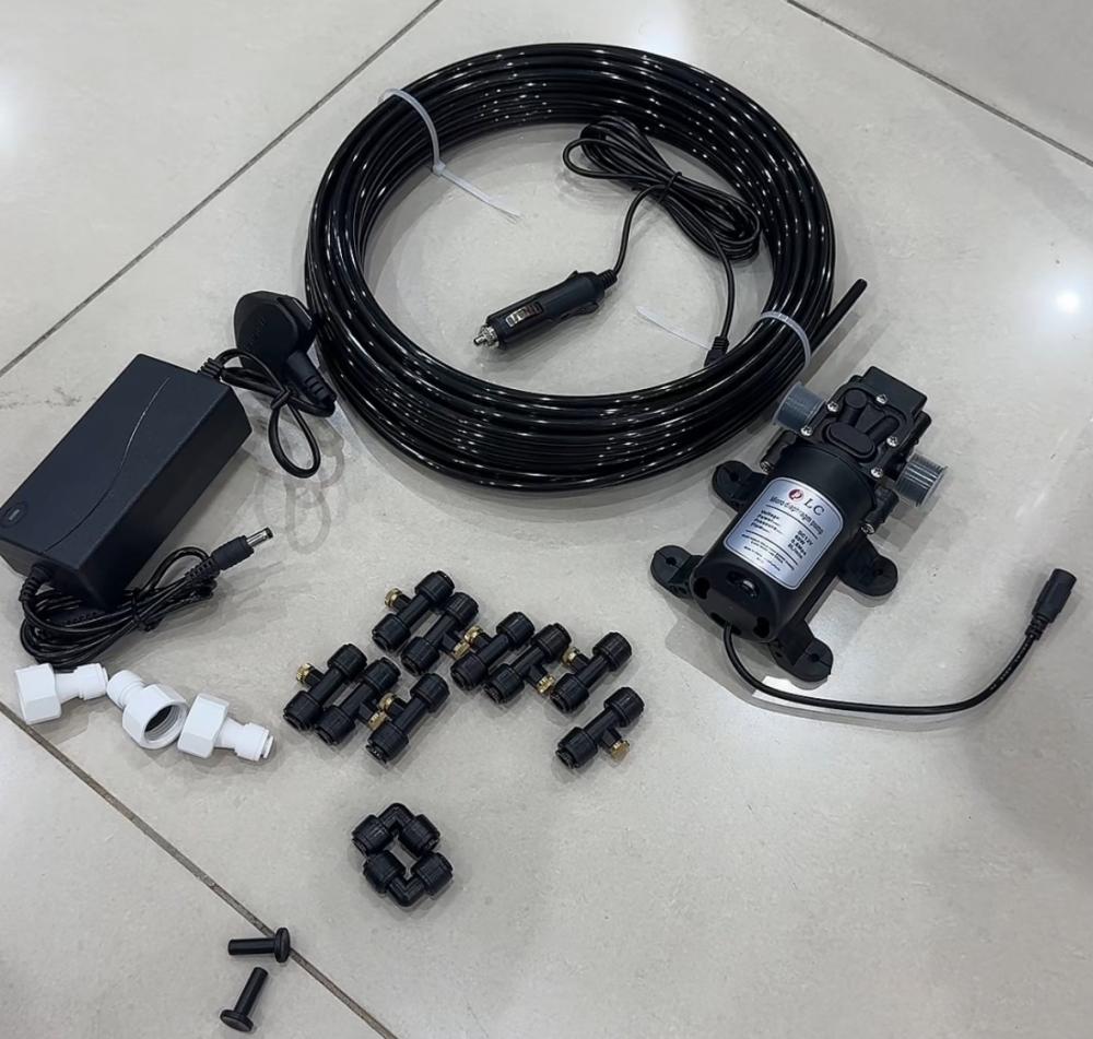 دينمو رذاذ 60 واط يعمل على 12 فولت مع محول يعمل على كهرب 220 و لي بطول 20 متر و 10 حبات نزل رذاذ