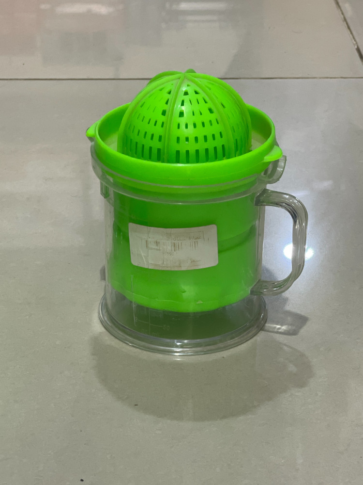 كوب بلاستيكي شفاف مع عصارة حمضيات يدوية